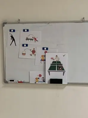 Nous avons construit une base de données d'images adaptées au tennis de table afin de favoriser la communication des enfants non verbaux ou peu verbaux. c'est aussi un moyen très adapté pour cadrer et structurer les séances.